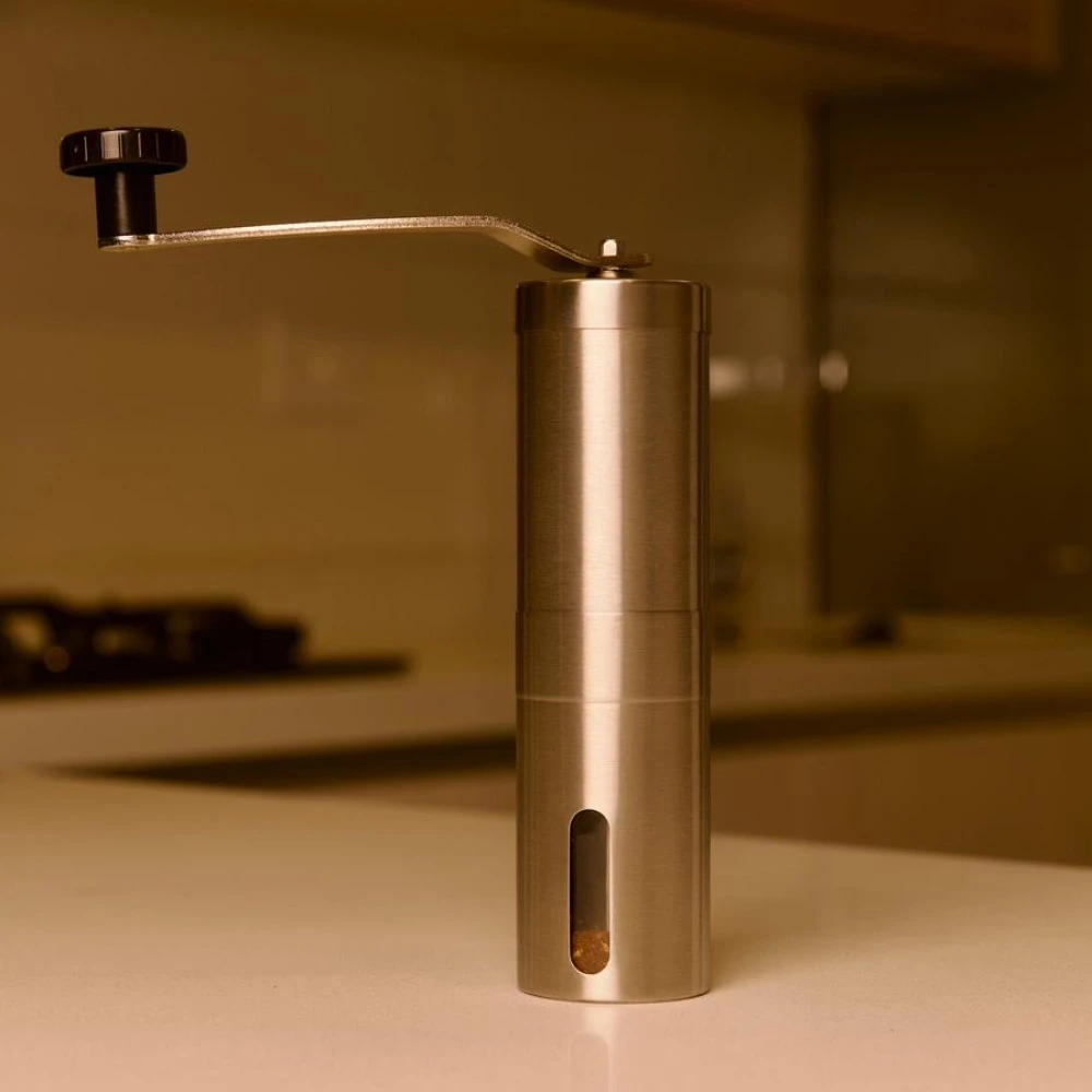 Descubre el placer auténtico de moler tu propio café con nuestro molino manual de acero inoxidable, diseñado para los verdaderos amantes del café. Su diseño elegante, compacto y duradero lo convierte en el compañero perfecto para tu ritual diario, en casa o mientras viajas. Haz de cada taza una experiencia única. Redescubre el café con estilo, precisión y pasión. 🌱 ☕ Cómpralo hoy y transforma tu ritual de café en un momento inolvidable. ¡Haz clic y llévalo contigo!